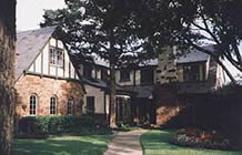 5530 Waneta as seen from the street is a little more casual in feel. This entrance was intended to be the service entrance with a circular drive and garage to the right. It was the long time home of Mr. and Mrs. Curtis Meadows.